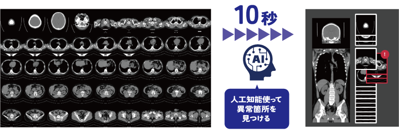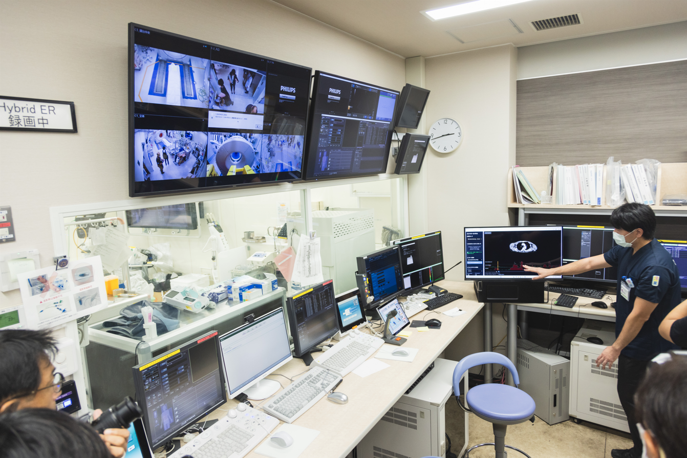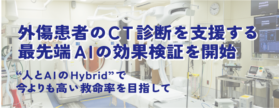 高度救命救急センターは、2011年8月、外傷患者の救命に必要な全ての『検査』と『治療』を同時に行うことができるハイブリッドERという救急初療室を世界で初めて臨床での運用を開始しました。これにより、CT検査、手術、カテーテルを同じ場所で行うことできるようになり素早い止血治療が可能になりました。しかし、重症患者の全身状態を知るために撮影されるCT画像は、1人につき数百枚から時には千枚を超え、医師がCT画像を1枚1枚読み解くには平均5分ほどの時間がかかります。